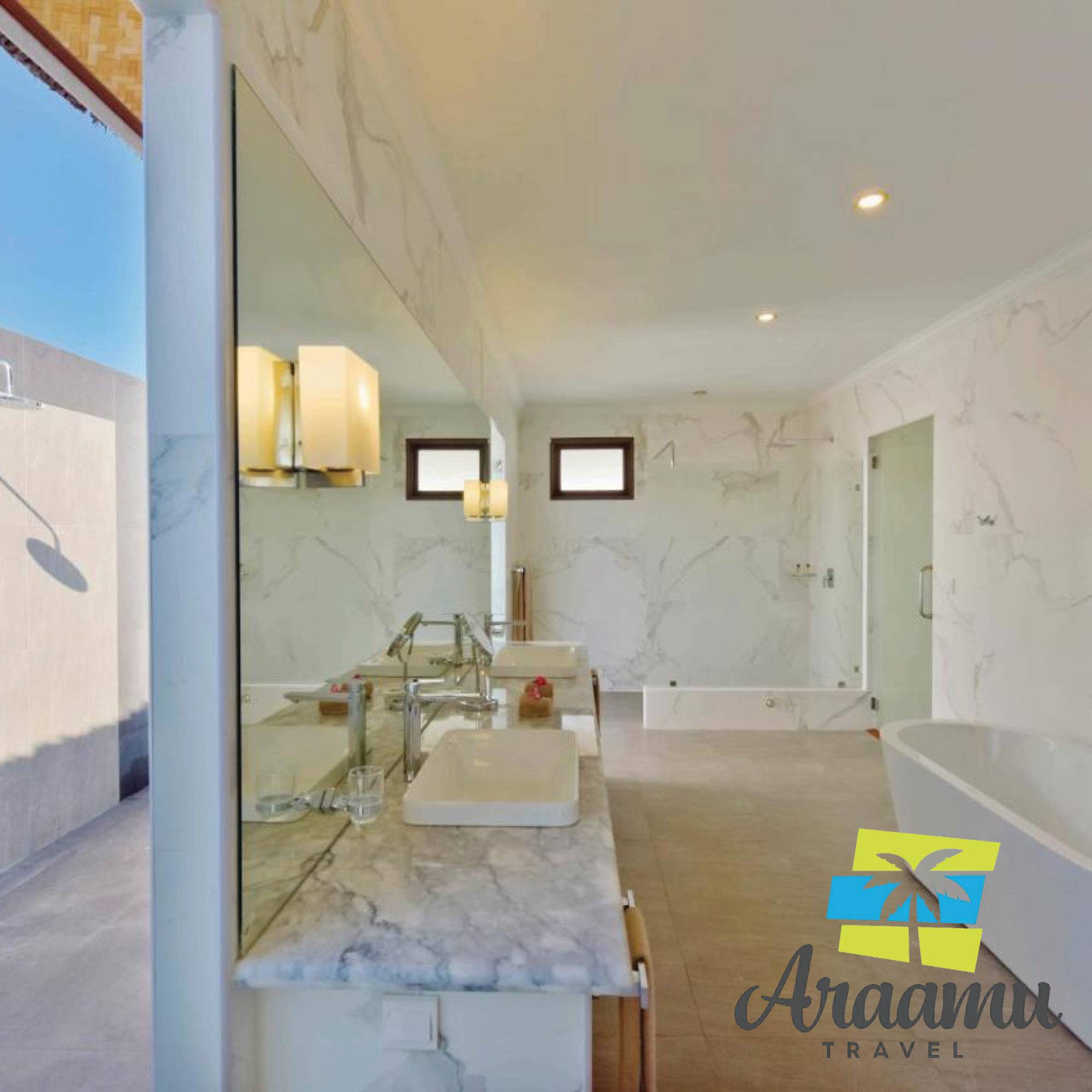 Beach Bungalow (kb. 78 nm): mindegyik tengerre néző kilátással és szabadon álló fürdőkáddal rendelkezik, külső- és belső zuhanyzó, WC, hajszárító, TV, telefon, klíma, kávé- és teafőző, ingygenes WiFi és napozóágy tartozik hozzá.