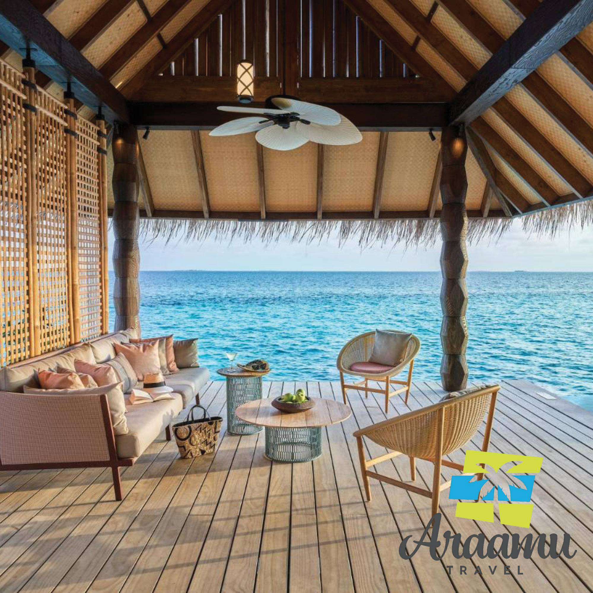 Hidroplánnal kb. 45 perc alatt, belső járattal Ifuru reptérre kb. 35 perc alatt és onnan még kb. 15 perc gyorshajóval, vagy privát hidroplánnal (felár ellenében).