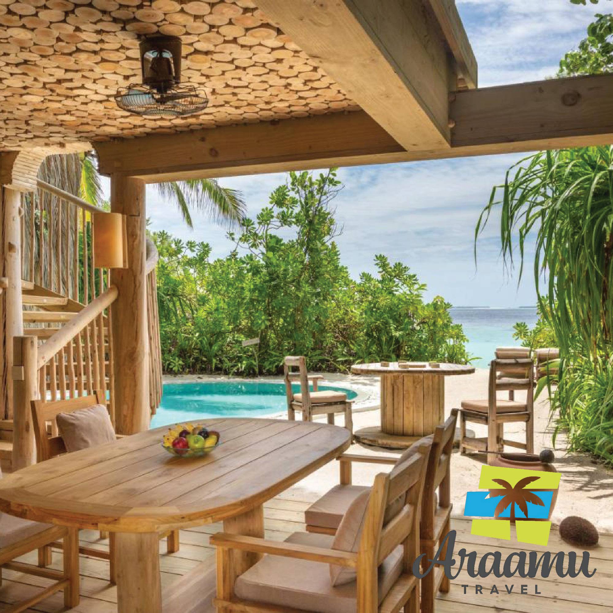 Nem hagyományos szállodáról van itt szó, hanem egy idilli otthonról a trópusi növénytakaró közepén. A hangulatot a magánszféra és egy a természethez igazított rusztikus környezet határozza meg. A kiszolgálás és a komfort a legigényesebb vendégeket is elégedettséggel tölti el.  A mesés sziget-érzés mellett a legjobb wellness programok és a szabad ég alatti mozi-élmények is adottak. Találhatóak itt éttermek, bárok, fagyalaltozó, internet, könyvtár, butik és egy csillagvizsgáló is. Minden vendég számára bicikli áll rendelkezésre. A reptér hidroplánnal kb. 35 percnyire van.