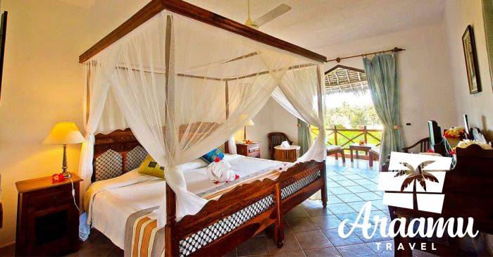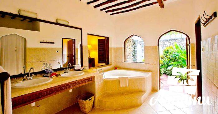Az idilli fekvésű hotel közvetlenül a fehér homokos tengerparton fekszik, part közeli korallzátonyokkal, az északkeleti parton, kb. 45 km-re Stone Town városától.